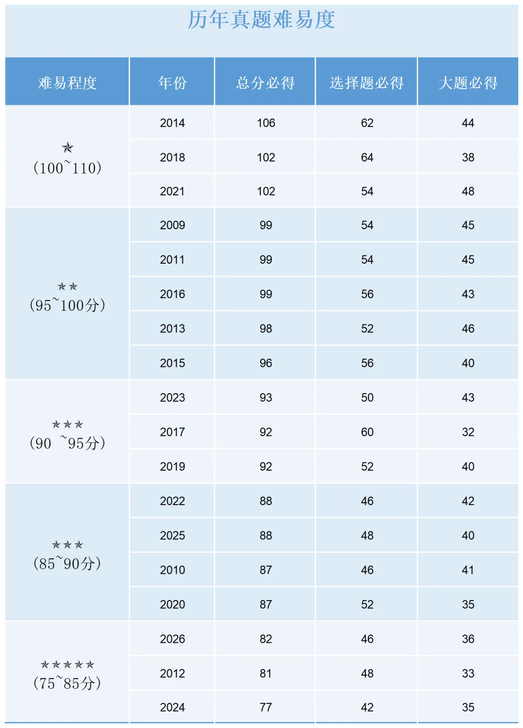选择题包含 6 道必得分题、4 道中等题,保底能拿 12 分,中等发挥 16 分,最高可至 20 分;大题难度为中等偏上,该板块保底得分 8 分,中等发挥能拿 11 分,最高可拿下 15 分。