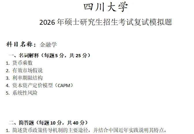 四川大学金融学考研复试真题模拟