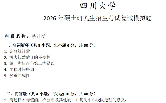 >四川大学统计学考研复试真题模拟