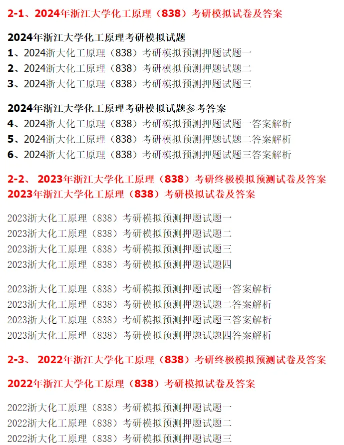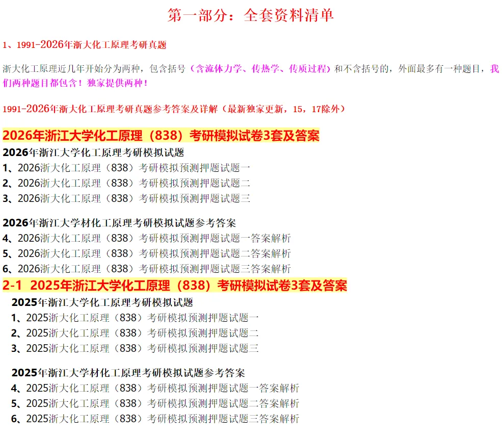 2027版浙江大学考研838化工原理真题试题答案解析浙大模拟押题核心笔记讲义答疑辅导及复试全套资料