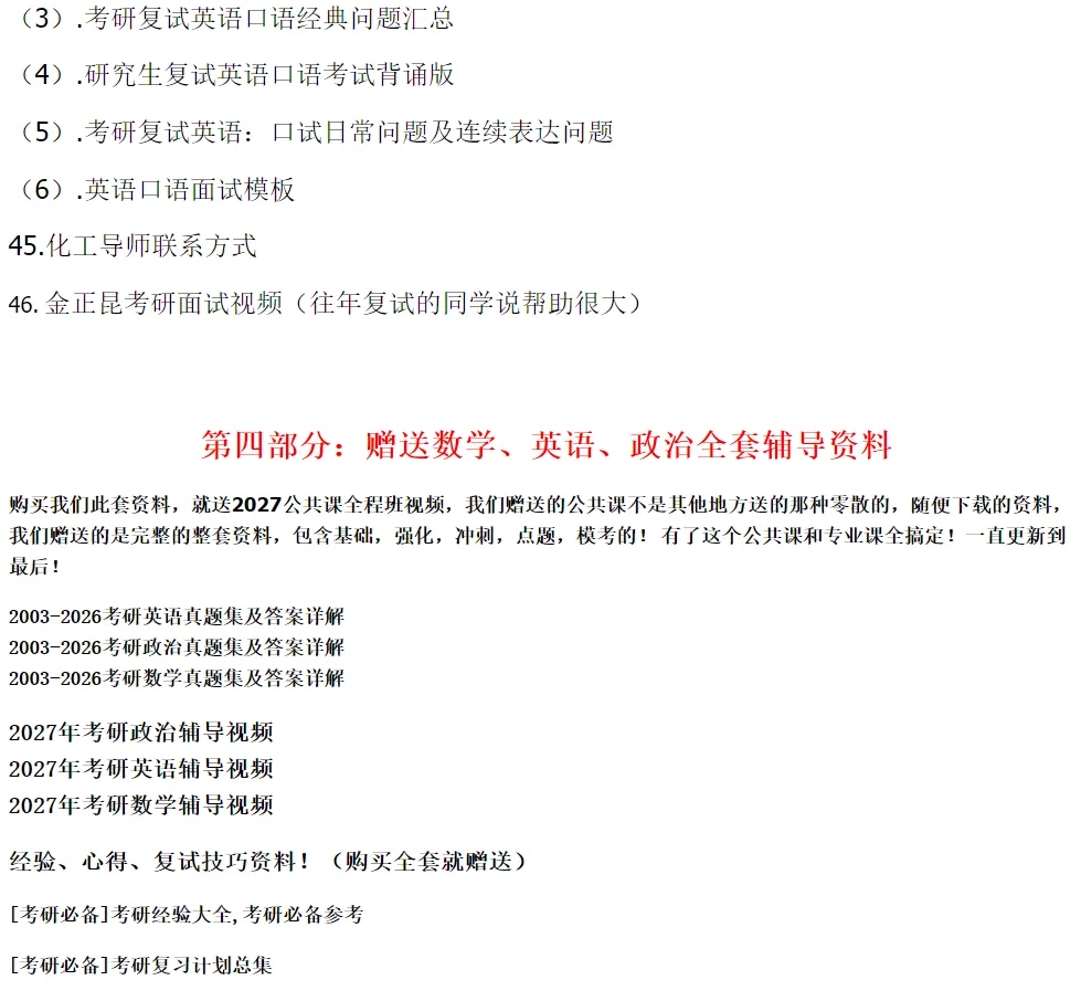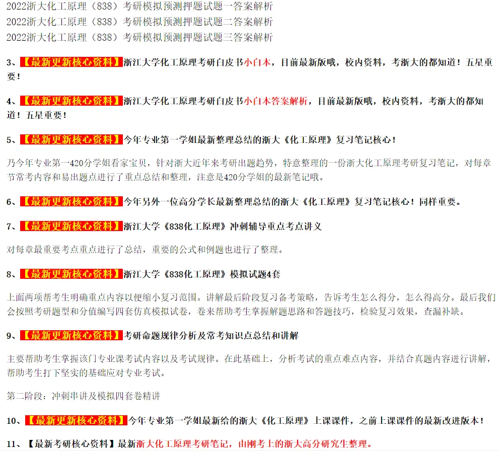 浙大及时雨唯一官方微信:kaoyanzheda资料非常详尽,可以随便对比,别人有的我们都有,别人没有的核心资料我们更有!!最全,保真。有的卖家没别人的资料全就说别人的只是多,他的是精,其实他们所谓的精只是我们资料的一小部分而已,我们多出来的反而是更加重要的最新资料!在我们这里可以花同样甚至更少的钱买更全更重要的资料!【好消息】:针对2027浙大考研,我们对考研全程五个阶段进行了全方位升级,有以下重大优势和改变: