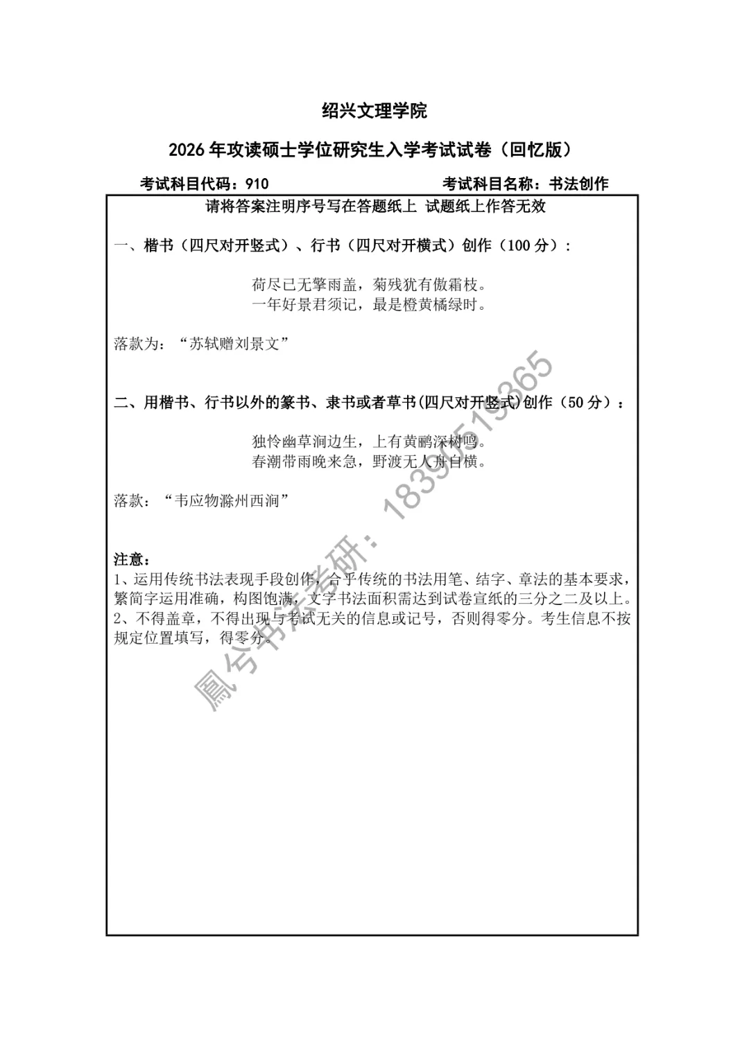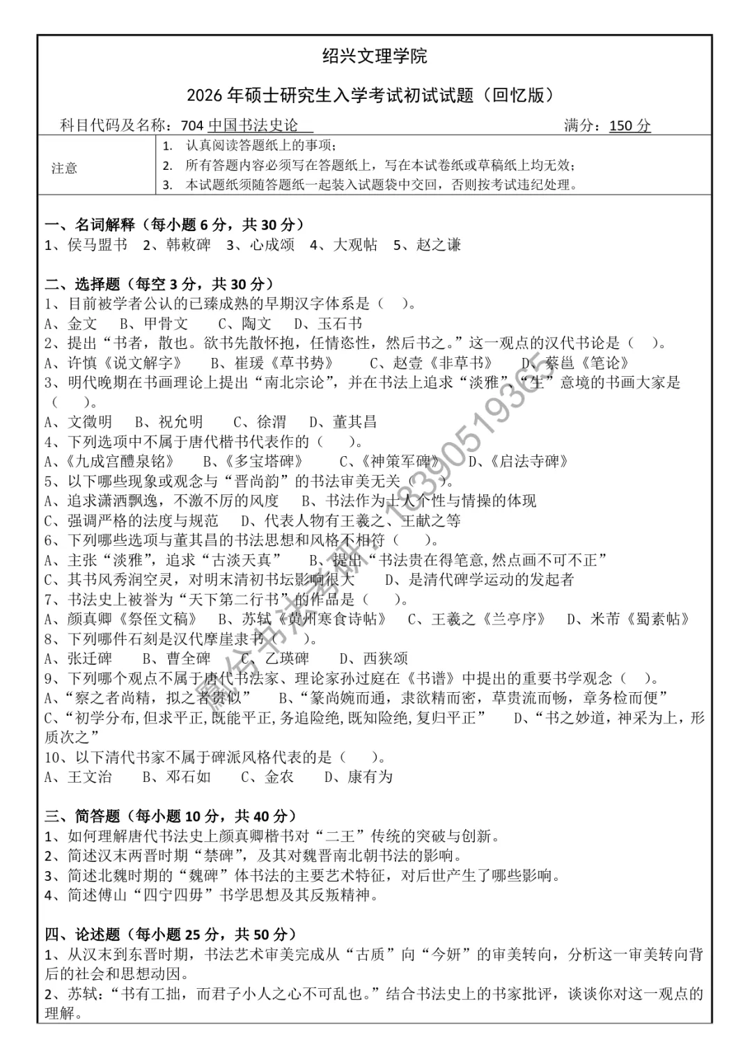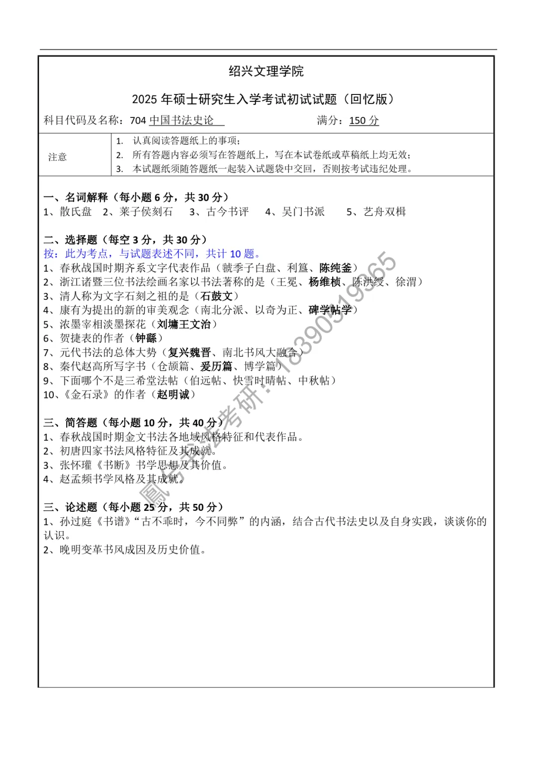 27院校分析 | 绍兴文理学院(绍兴大学)书法考研招考信息与真题分析