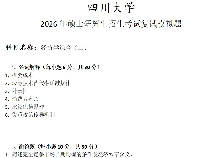 >四川大学经济学综合(二)考研复试真题模拟