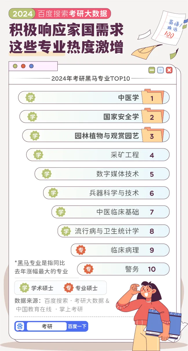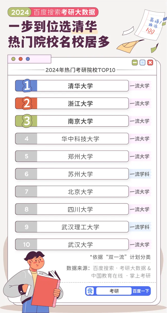 近期,百度搜索与中国教育在线联合发布了2024考研大数据,展示了考研的热门城市、院校以及专业的最新趋势。具体情况如何,一起来看看~