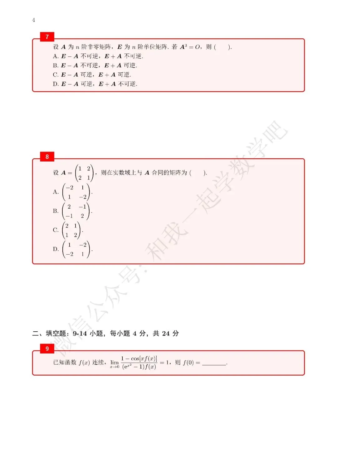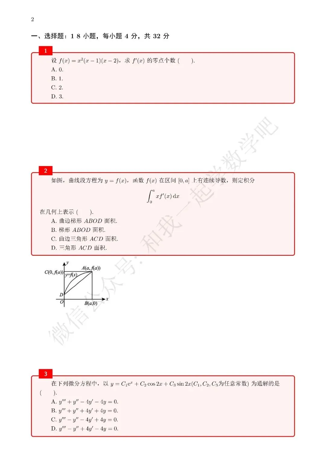 为了方便各位小伙伴们刷题,我重新排版了08年数二的真题,在每道题下面都增加了空白,方便大家写答案,记录相关知识点。