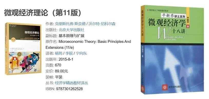 课本教材:尼科尔森《微观经济学理论 基本原理与扩展》、平新乔《微观经济学十八讲》