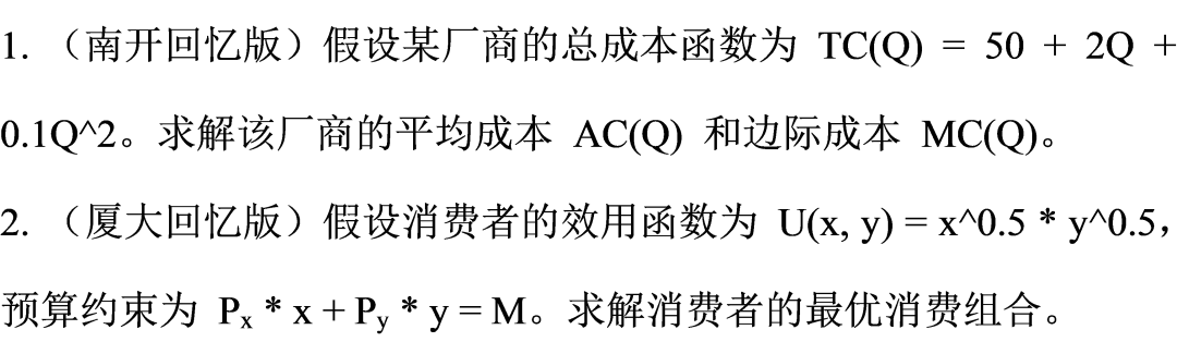 经过系统的复习和准备,相信大家已经对微观经济学的核心知识点有了较为全面的掌握。那么,是否想小试牛刀,检验一下自己的学习成果呢?下面,我们就为大家精选了一些经典的保研笔试真题,涵盖各个重要知识点。通过这些真题的练习,你不仅可以加深对理论的理解,还能提前适应考试的节奏和难度。快来试试吧!