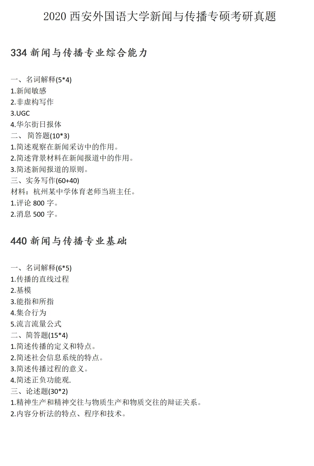 >西安外国语大学新闻与传播考研真题2020