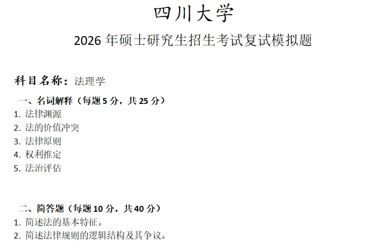 >四川大学法理学考研复试真题模拟