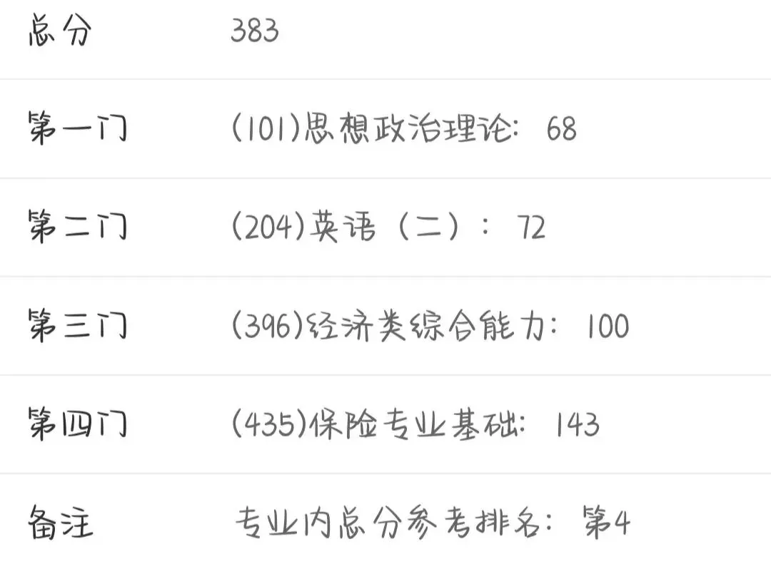 个人情况:我本科就读于河南一所二本院校的保险学专业,我的政治、英语、396其实考的很一般,主要是专业课分数高,所以大家可以着重看专业课部分,至于其他科目我只能说是分享一下我自己的学习过程,谈不上经验。政治:我是7月放暑假后开始学习的,每天看徐涛强化班网课+肖秀荣1000题,这个阶段的学习相对轻松,我把它放在晚饭后,听课(可以倍速)+写题大概用时1.5h,这一阶段持续到9月初开学后。