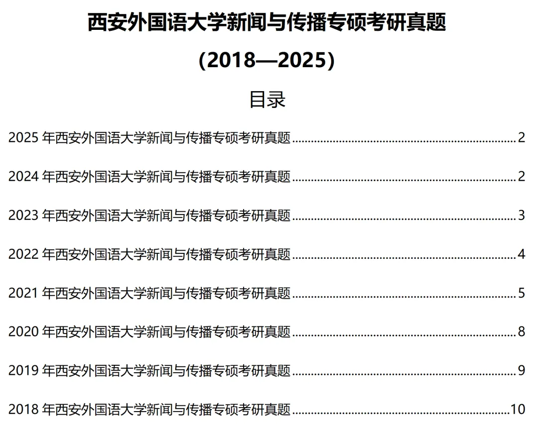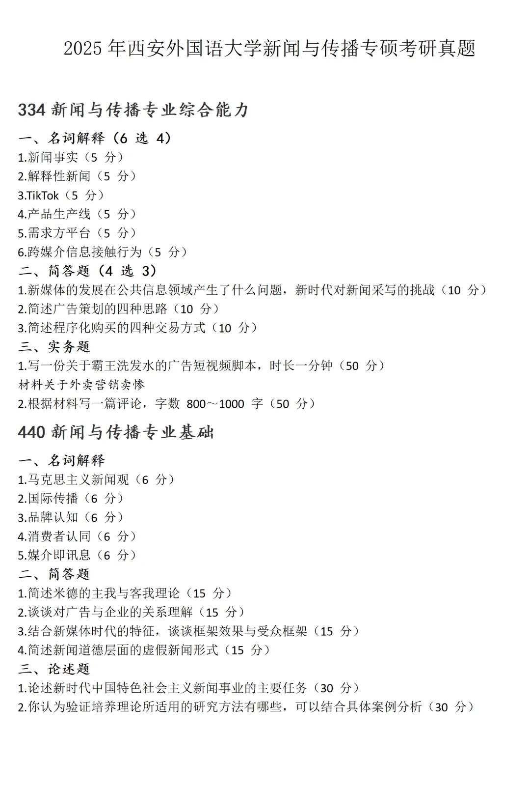>西安外国语大学新闻与传播考研真题2018-2025历年