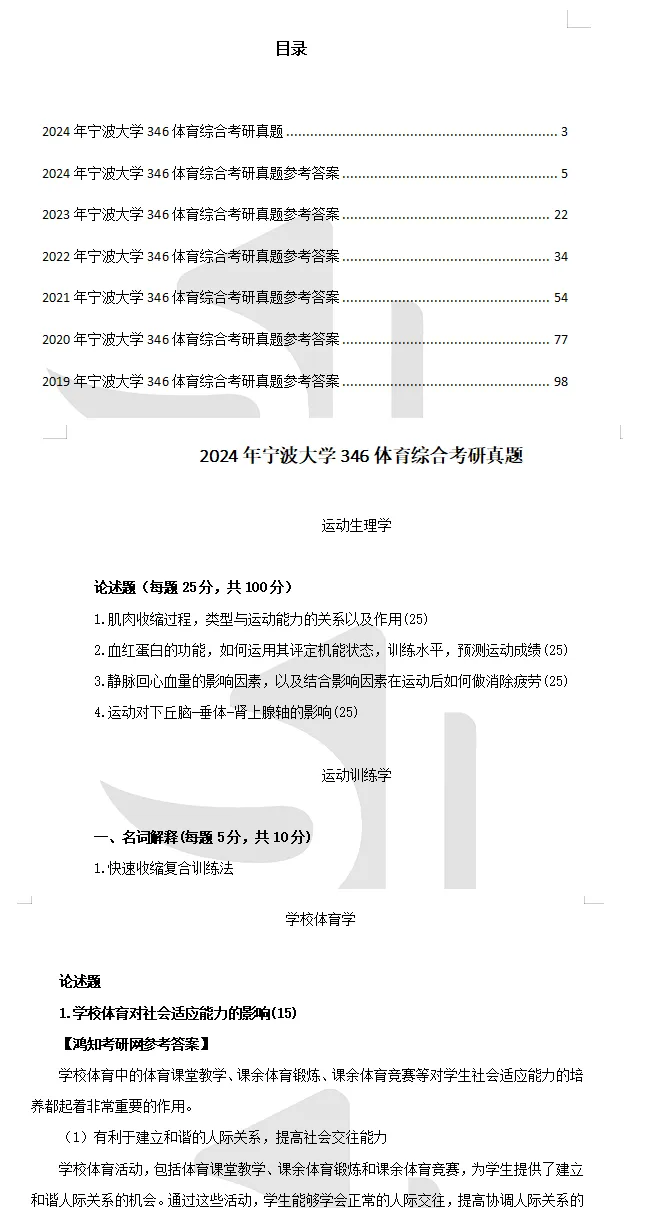 2024年宁波大学346体育综合考研真题试卷与参考答案