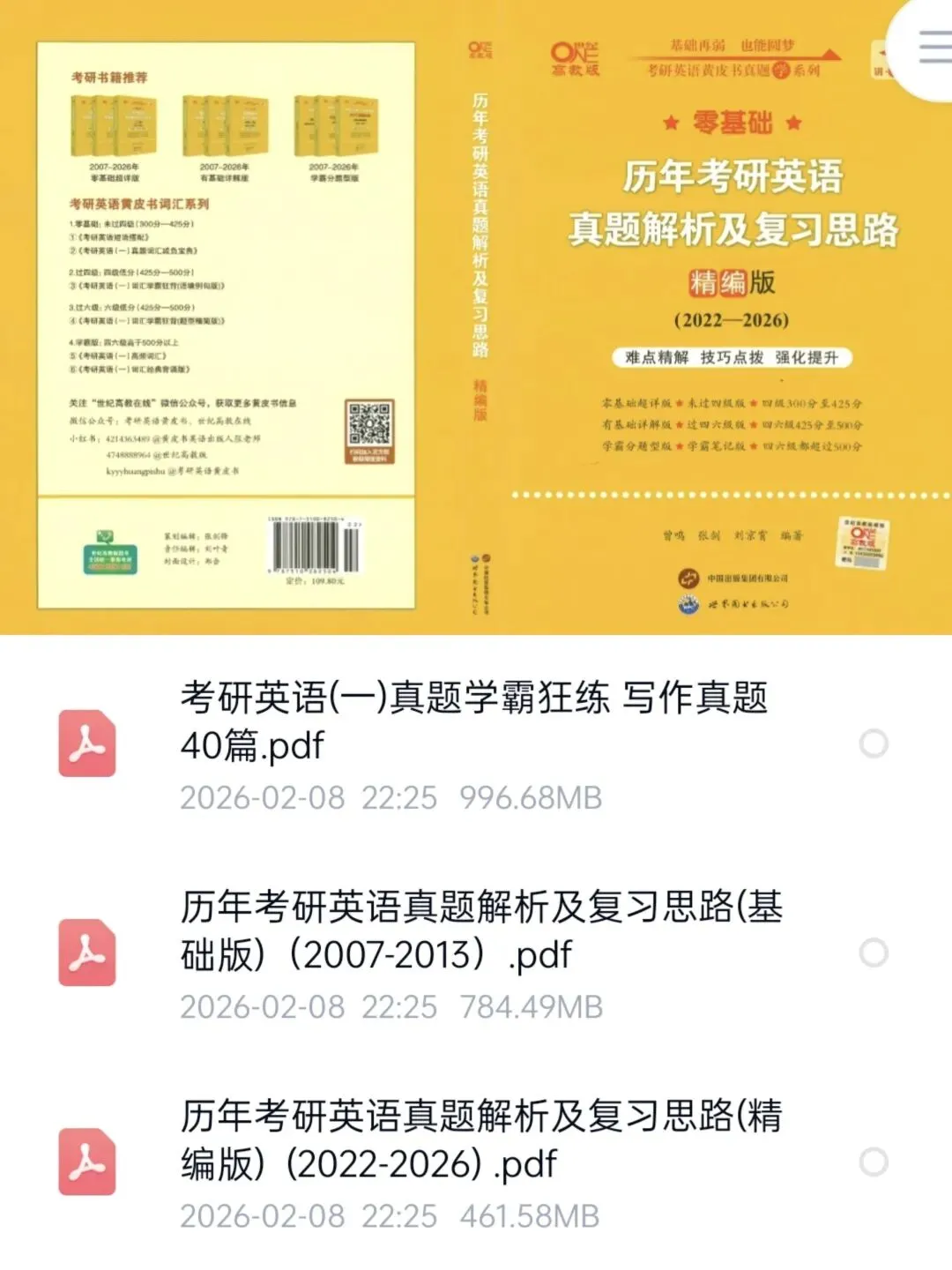 2027考研英语《黄皮书》英一英二全套高清电子版PDF无水印可打印已经更新,有需要自取,获取方式在下方。