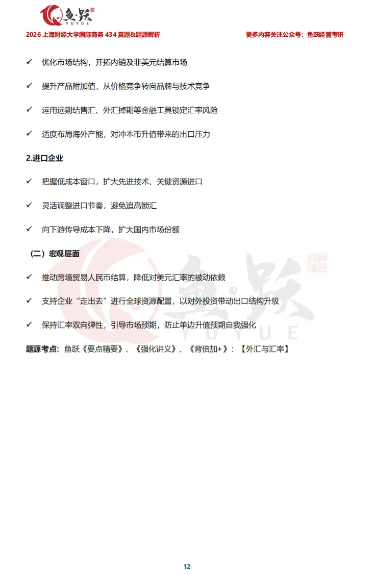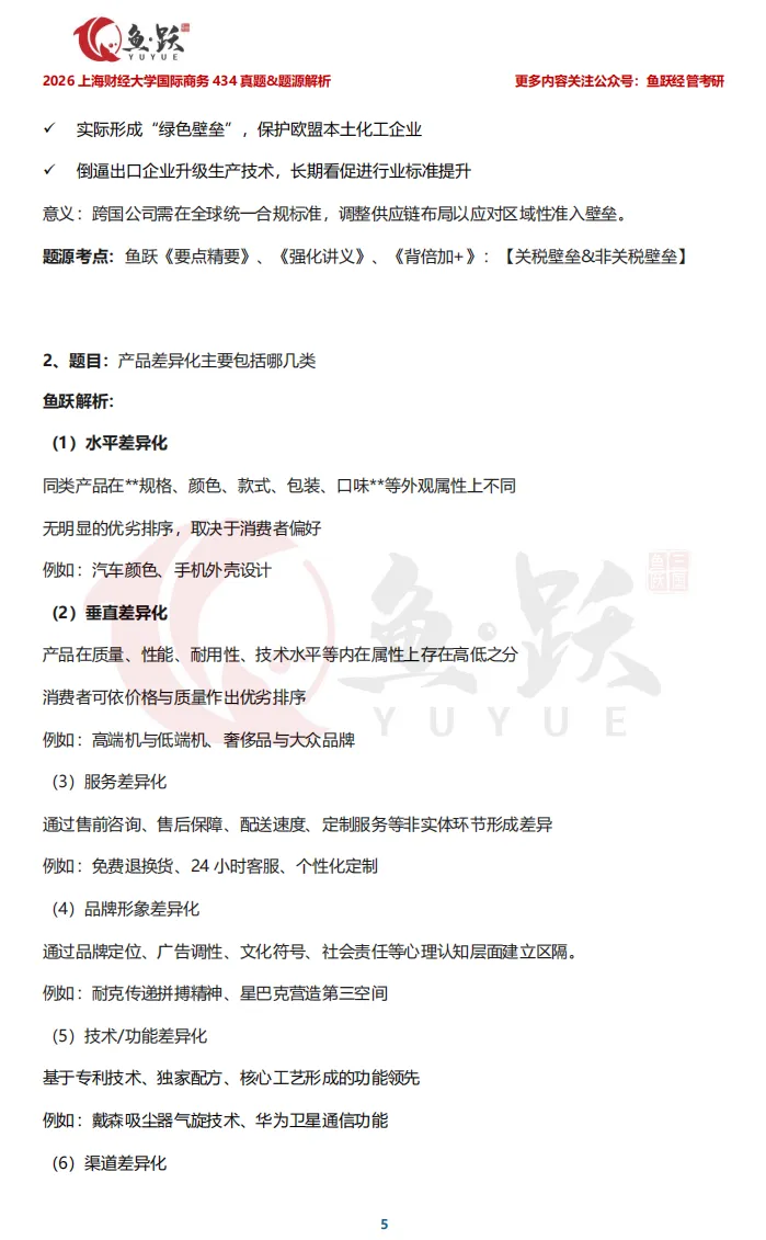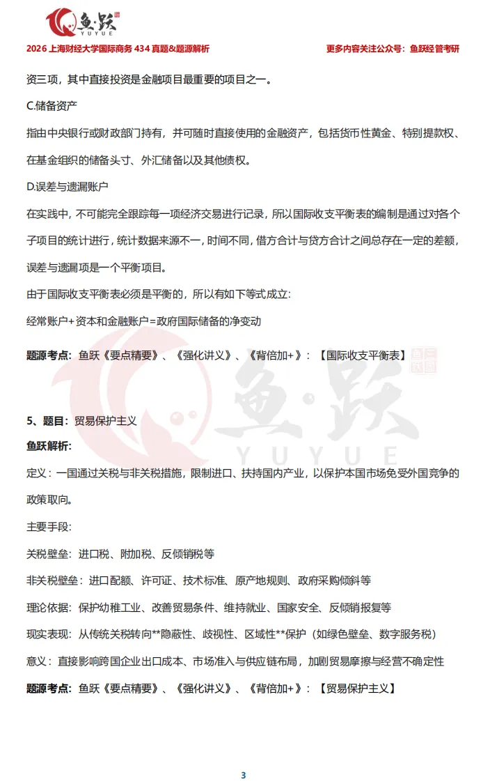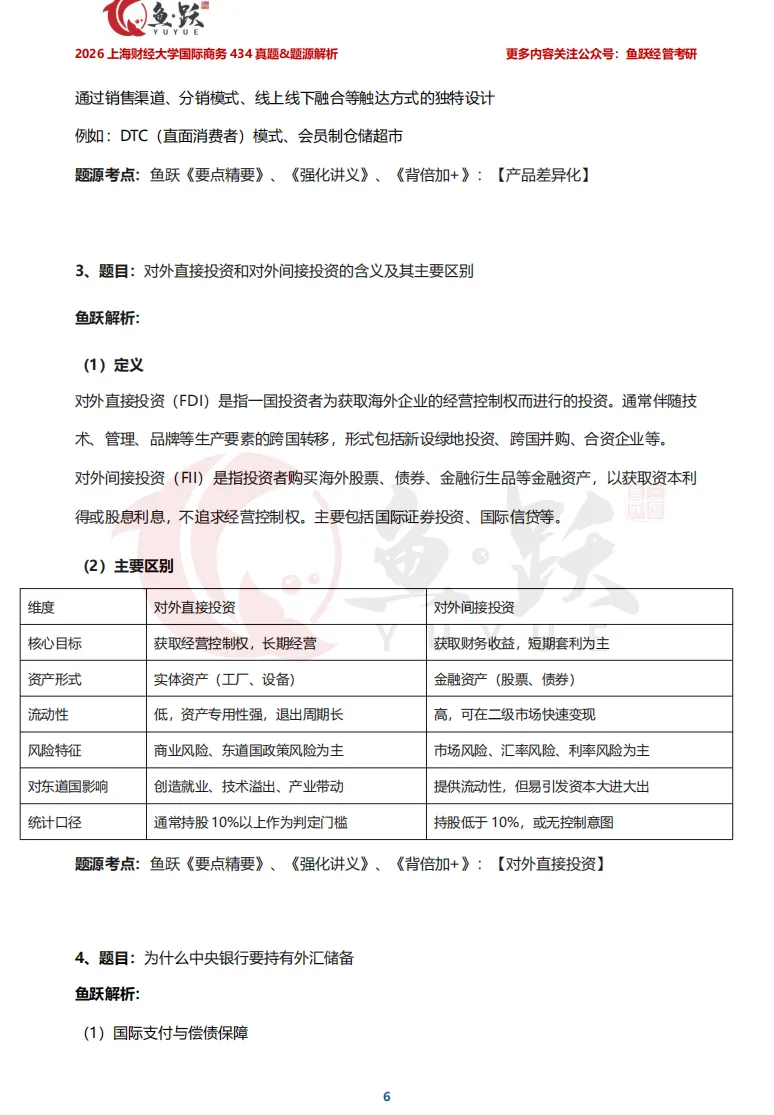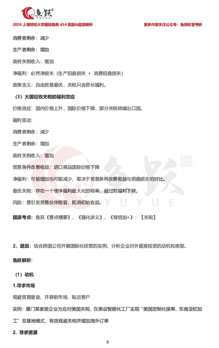 接下来,鱼跃将带领大家逐一剖析上海财经大学国际商务真题内容,帮助同学们在复盘中获得实实在在的成就感,也为后续备考的学弟学妹们,探明更清晰、更高效的复习方向。