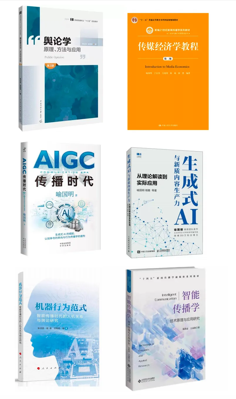 8、关注和北师大专题相关的重要书本,包括《智能媒体传播概论》、《智能传播理论、方法与实践》、《智能传播》、《智能传播关键概念》、《传播心理学》等。