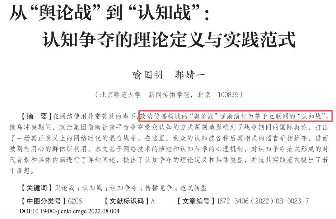 《从“舆论战”到“认知战”:认知争夺的理论定义与实践范式》