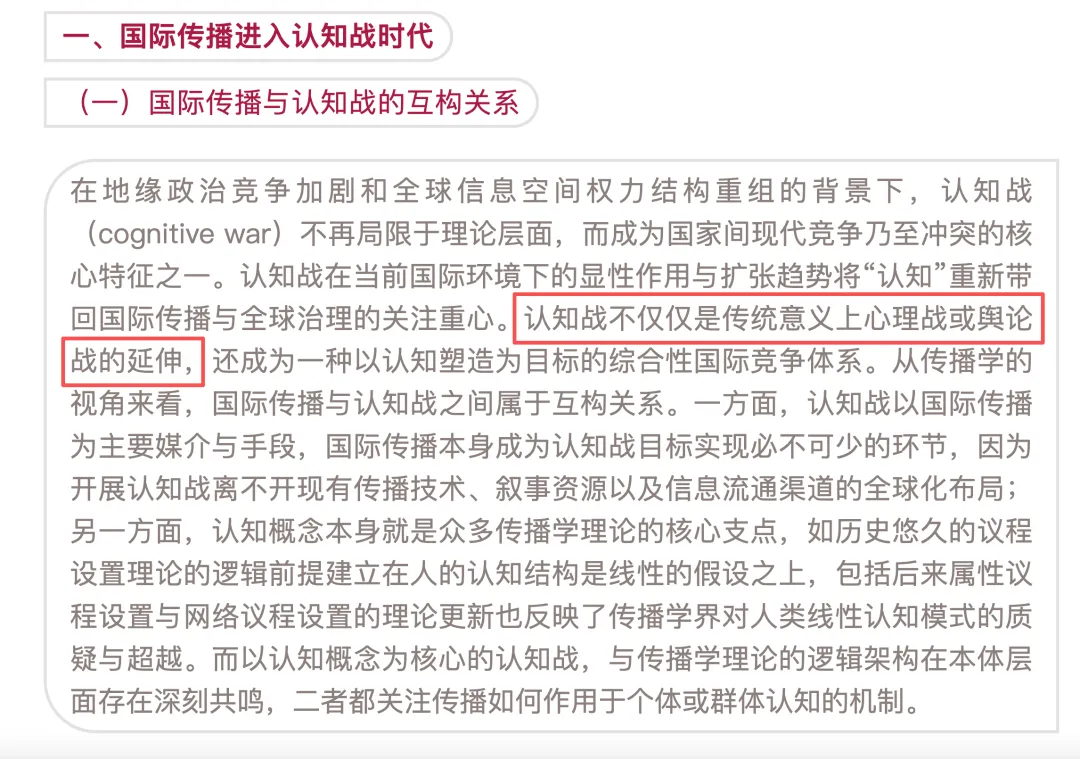开头:舆论战和认知战的定义、从舆论战到认知战的范式变迁,认知战的背后本质上是智能技术影响国际传播格局。