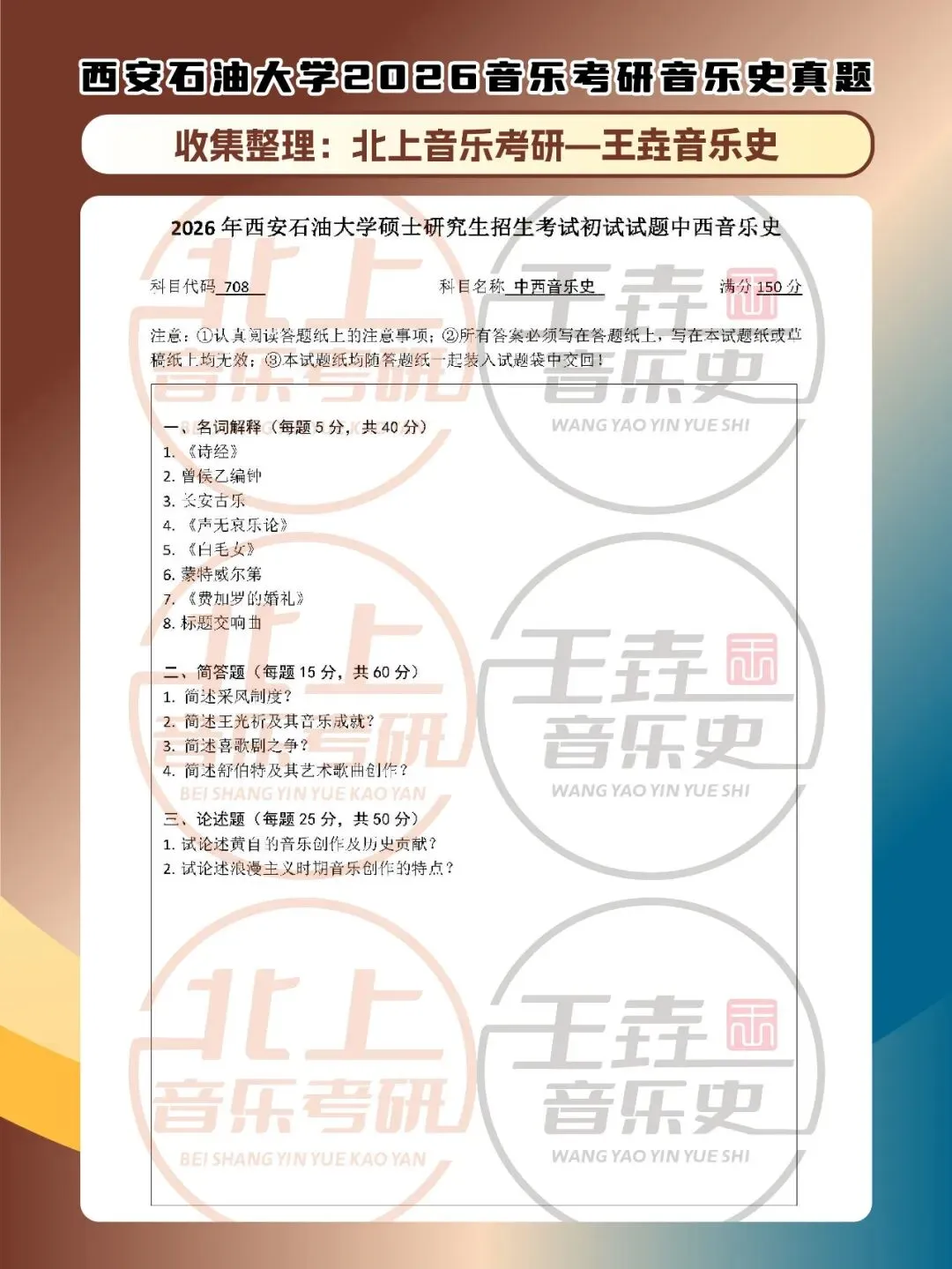 >西安石油大学2026音乐考研音乐史真题|北上音乐考研-王垚音乐史工作室收集整理