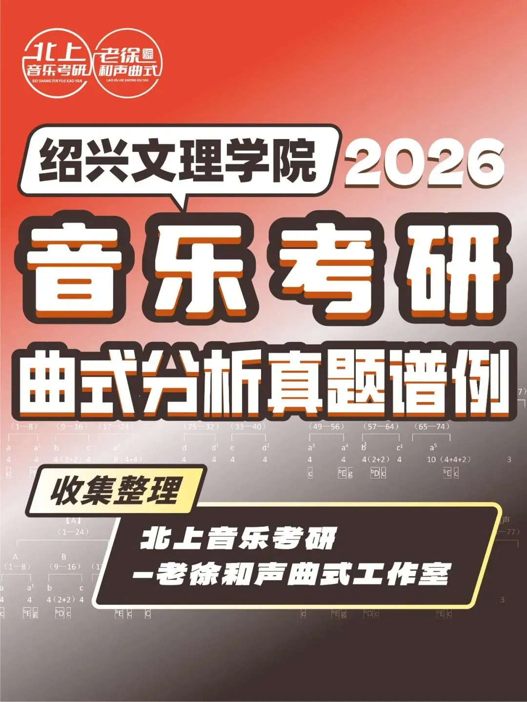 绍兴文理学院2026音乐考研曲式分析真题谱例|北上音乐考研—老徐和声曲式工作室收集整理