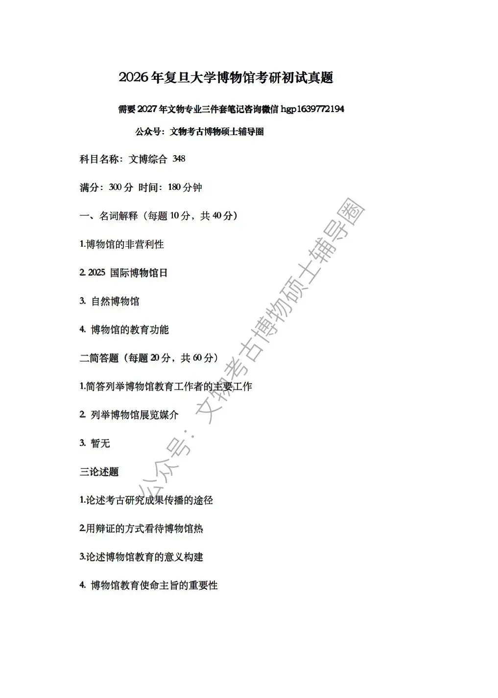 2026年复旦大学博物馆考研真题答案讲解