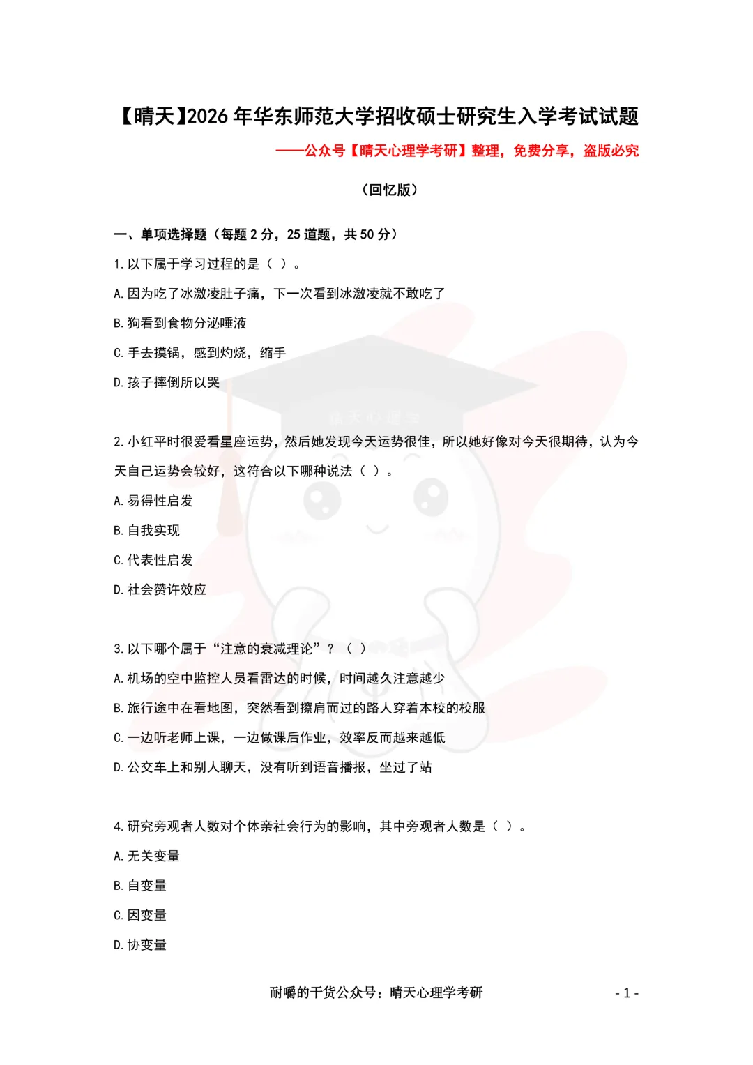 当前位置:首页>考研真题>【心理学考研真题】26年华东师范大学347应用心理真题