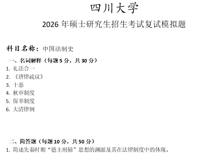 >四川大学中国法制史考研复试真题模拟