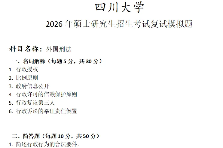 >四川大学外国刑法考研复试真题模拟