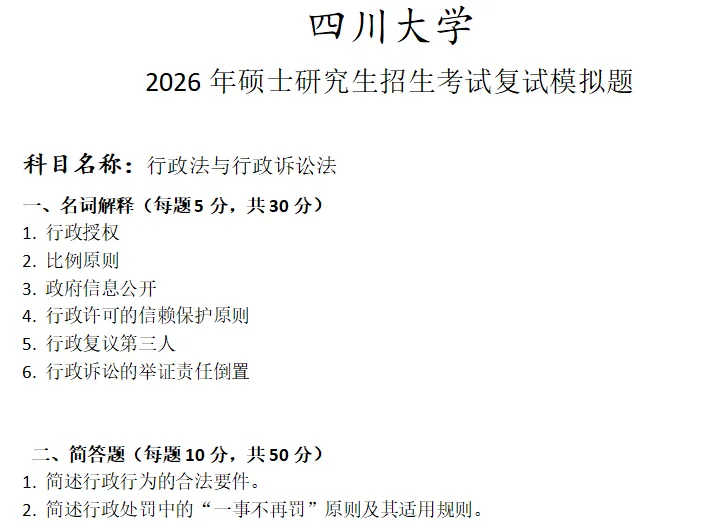 >四川大学行政法与行政诉讼法考研复试真题模拟