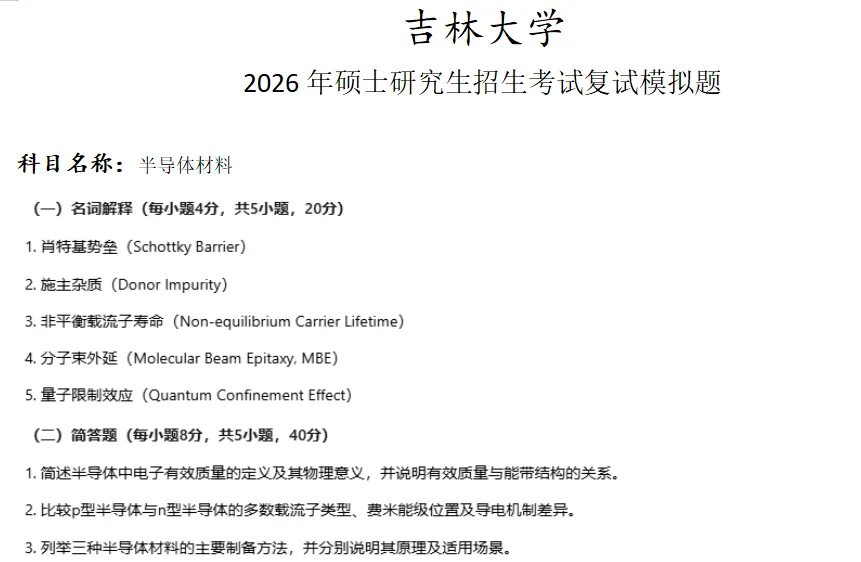 吉林大学半导体材料考研复试真题模拟含答案