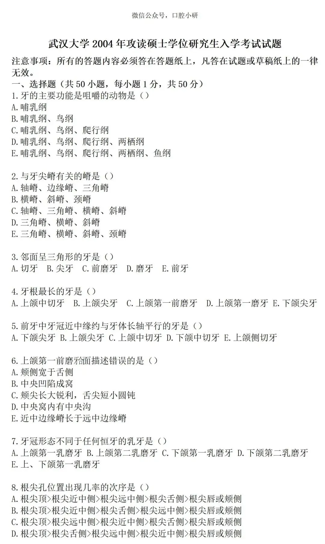 3.本团队为武大口腔学生自主组建,不属于任何机构;所有资料均为原创整理编写,质量可靠。