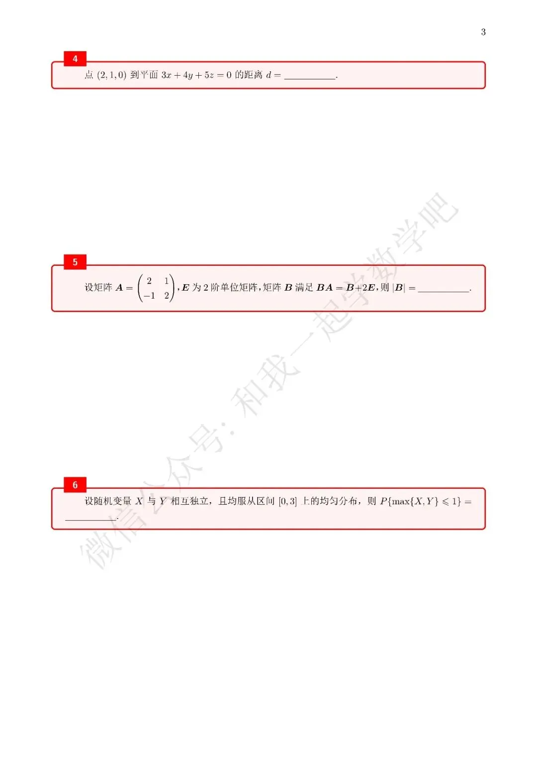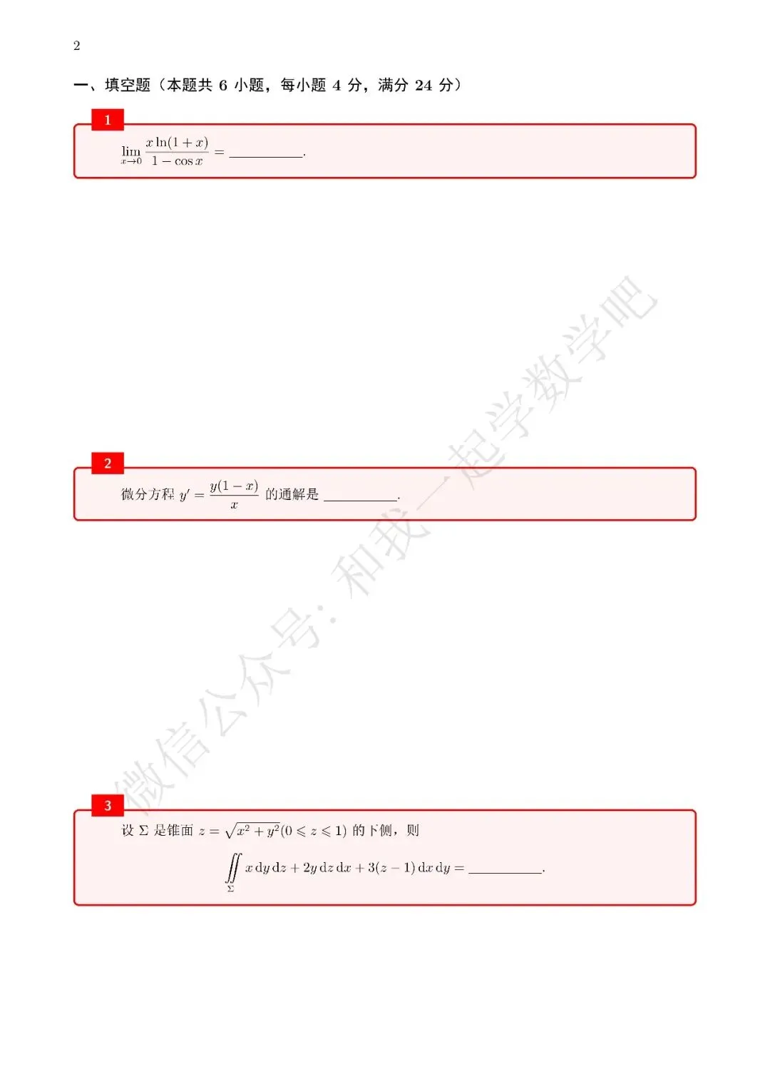 为了方便各位小伙伴们刷题,我重新排版了06年数一的真题,在每道题下面都增加了空白,方便大家写答案,记录相关知识点。