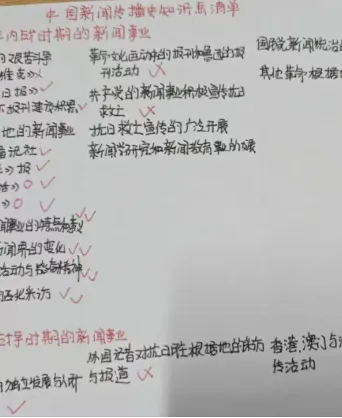 一轮默写我是没有挑内容的,基本上思辨课和新闻史的知识点我都进行了默写,和背书一样,默写之前我会先理出来这一章的框架后再进行默写,了解这一章具体有什么内容对一些重要的内容全部默写,对一些内容只默写关键词。这一轮默写不要在乎字迹,只需要保持对每一章的内容有完整的思路。默写中会发现很多写不出来的内容和记混的内容,一定要重新记忆,避免默写完订正时候的即时记忆认为自己会。