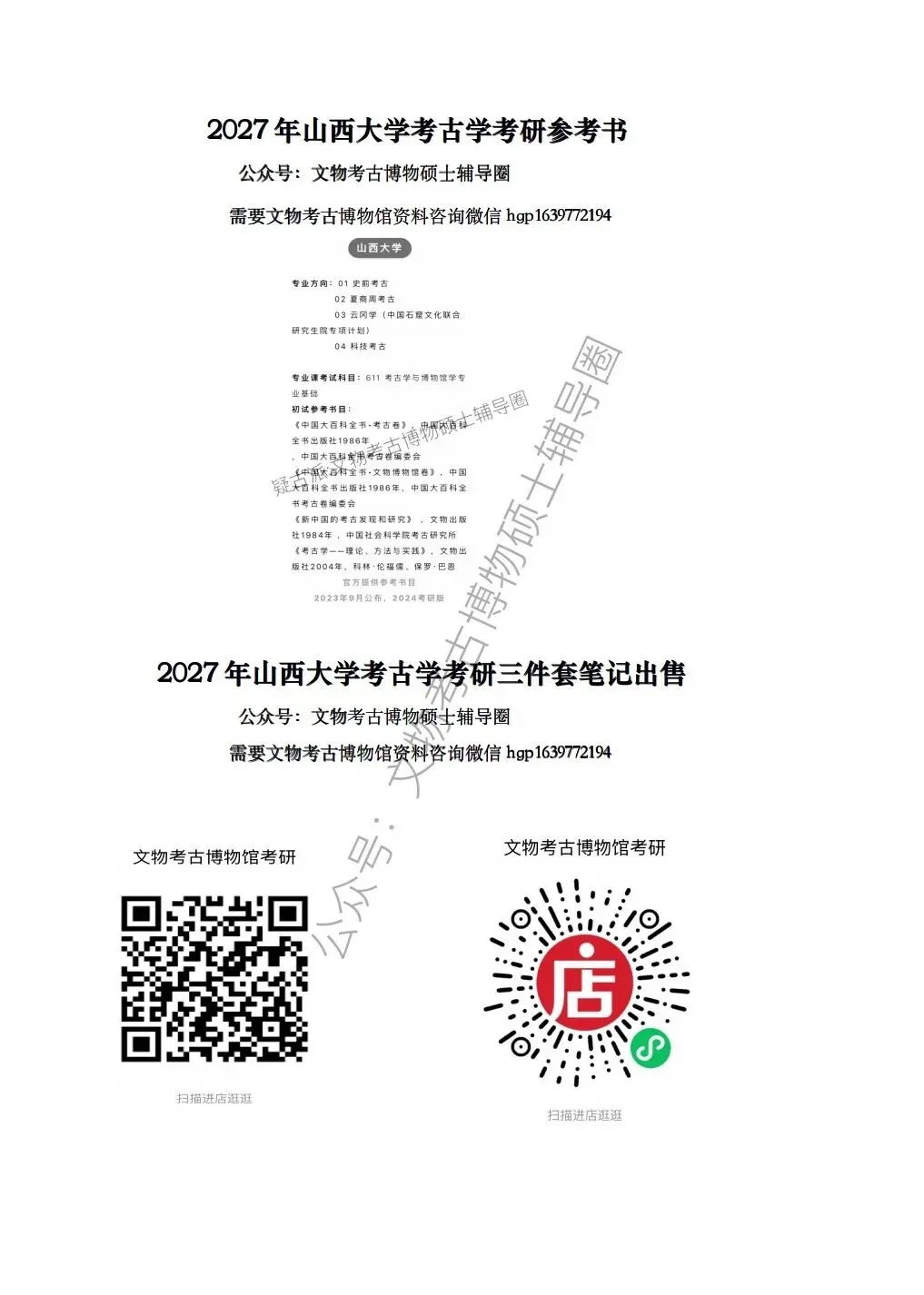 2027年考古学考研三件套笔记出售链接二维码
