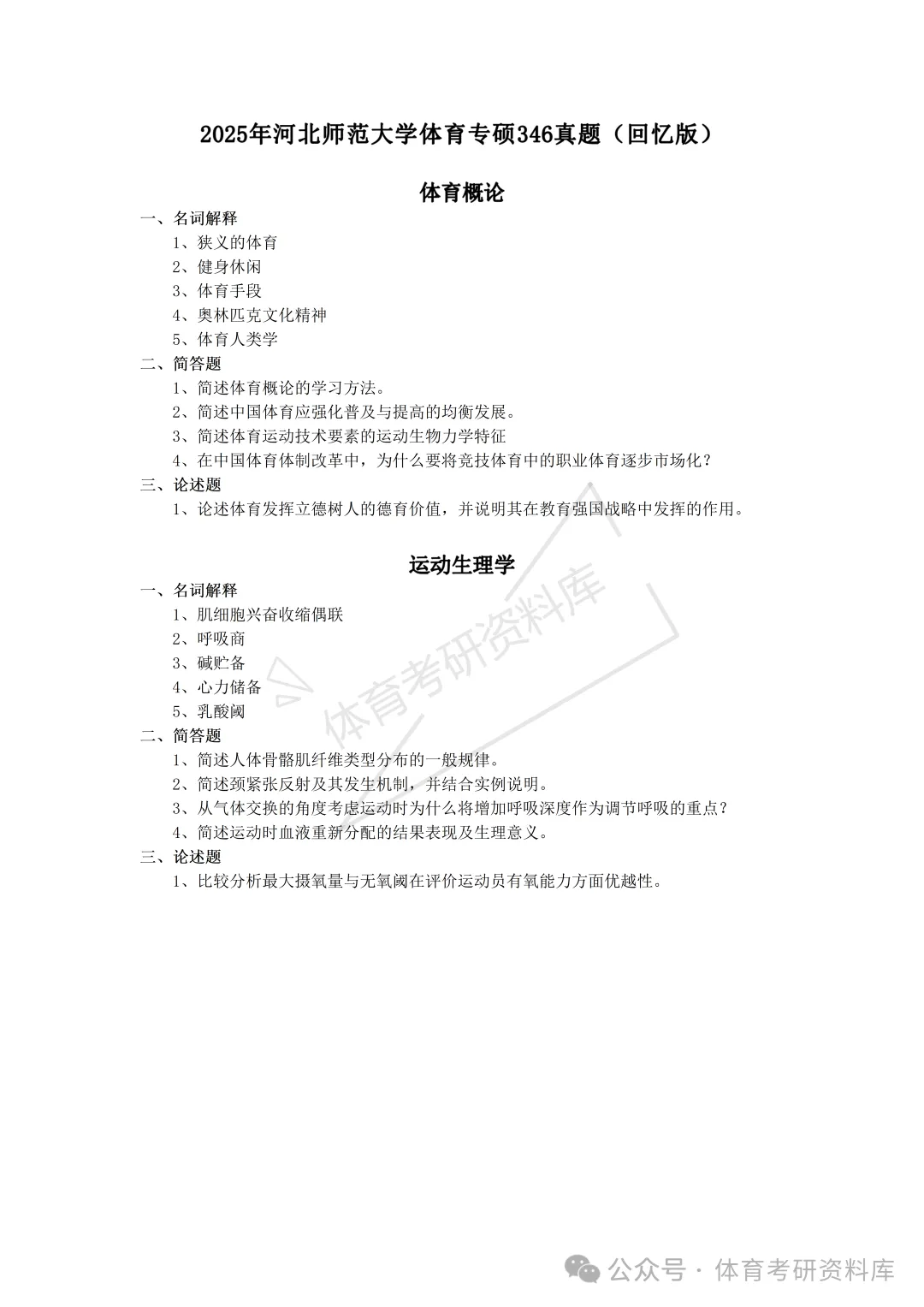 ③346体育综合(体育概论,运动生理学)