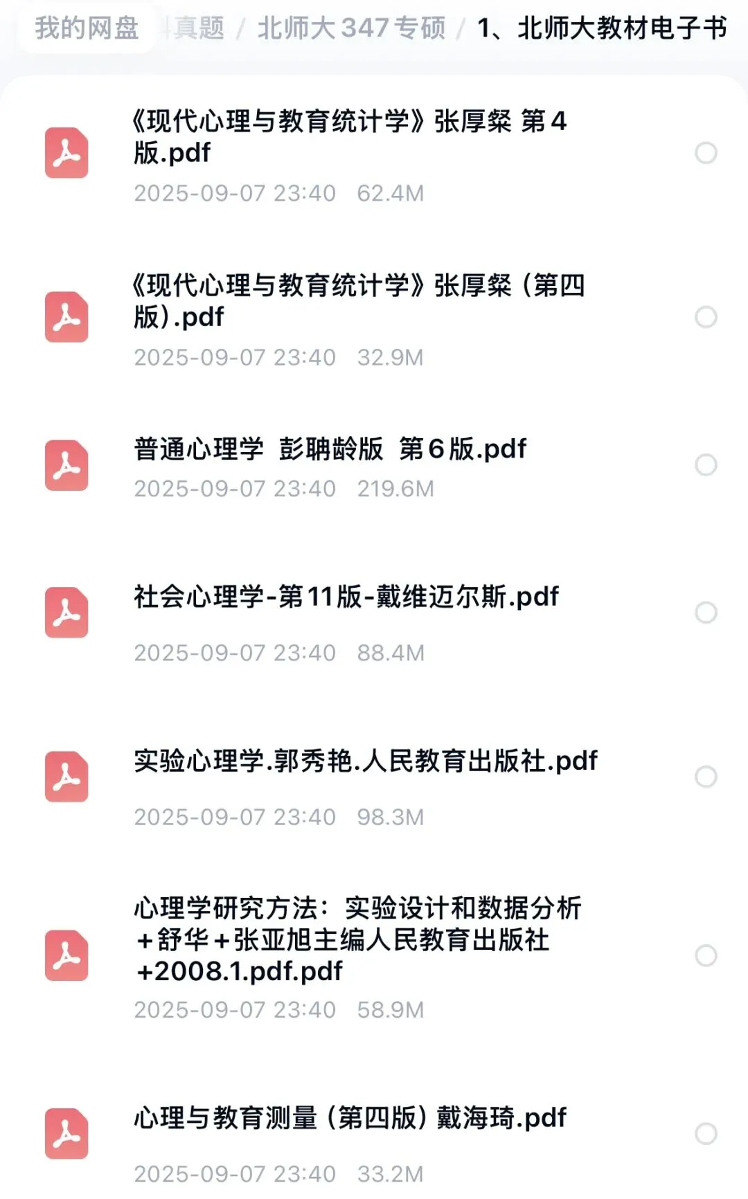 任务审核通过后,即可免费获得北师大347心理专硕电子书教材