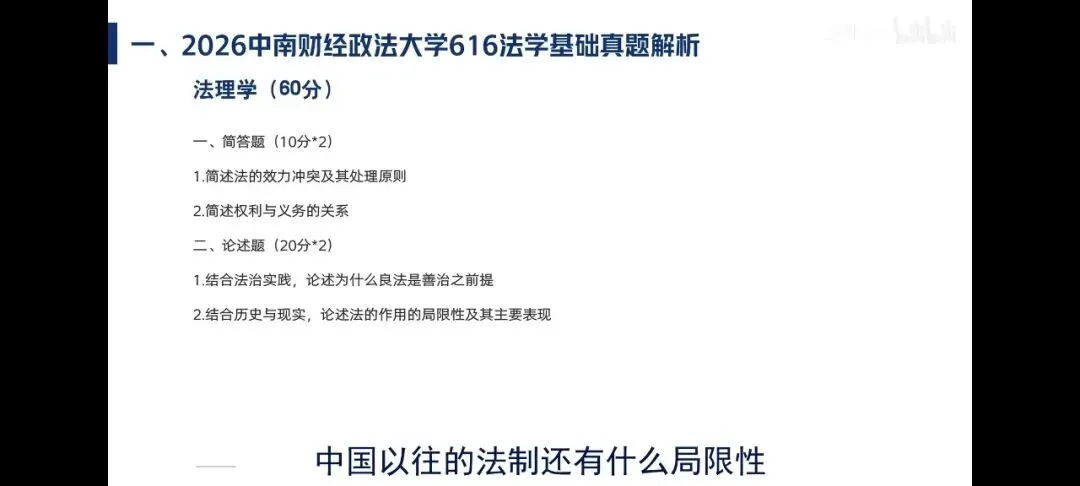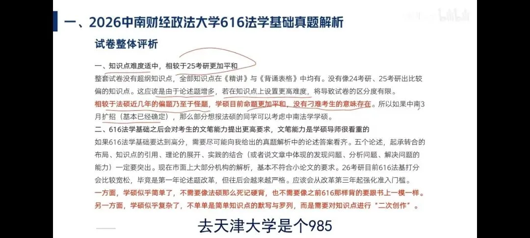 26考研616法基试题出现了全面改革,这对于26考研学子与27考研学子有何影响?26考研阅卷尺度如何?27考研应当如何重新准备?目前26与27考研中南财法学硕士招生情况又是如何?西风匹马师兄通过两个半小时图文并茂的视频课为你一一讲解!