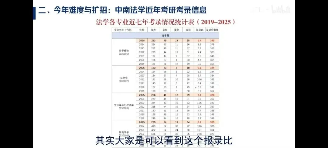 26考研中南法学弃考人数较多,26考研最后很多学科的加权报录比(过国家线报录比)会很低。个别学科可能会出现刚招满乃至招不满的现象。