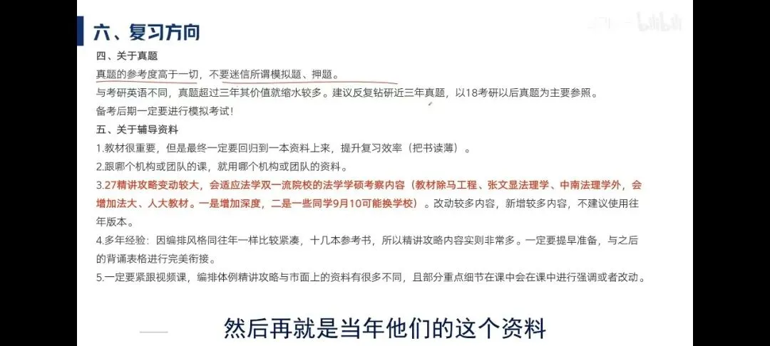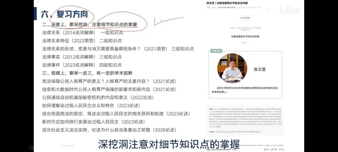 考生需要重视相关参考教材,对于教材的阅读存在相对的主次之分。要注意法治思想25年的学习纲要。