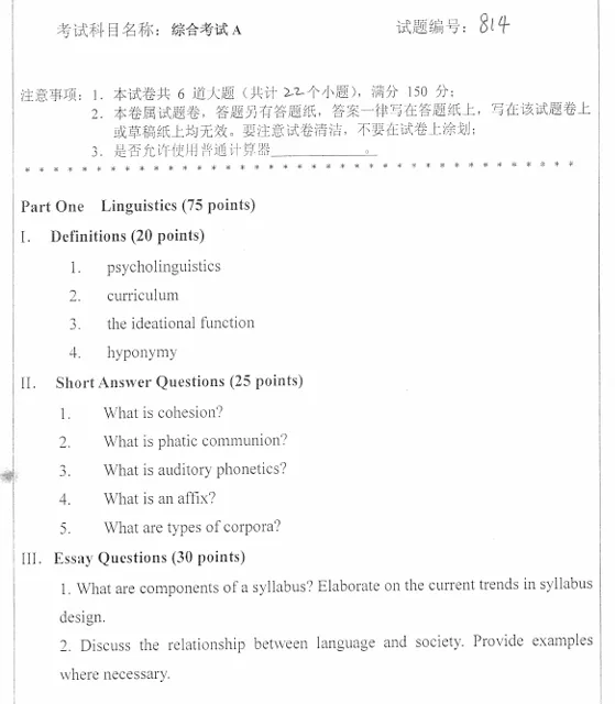 >山东师范大学综合考试A考研真题