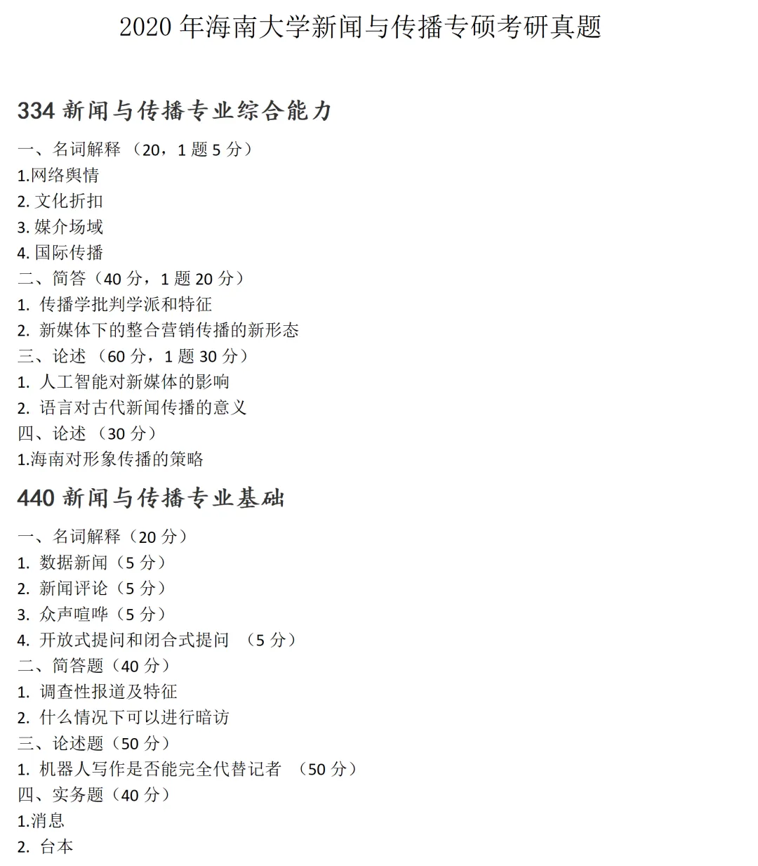>海南大学新闻与传播考研真题2020