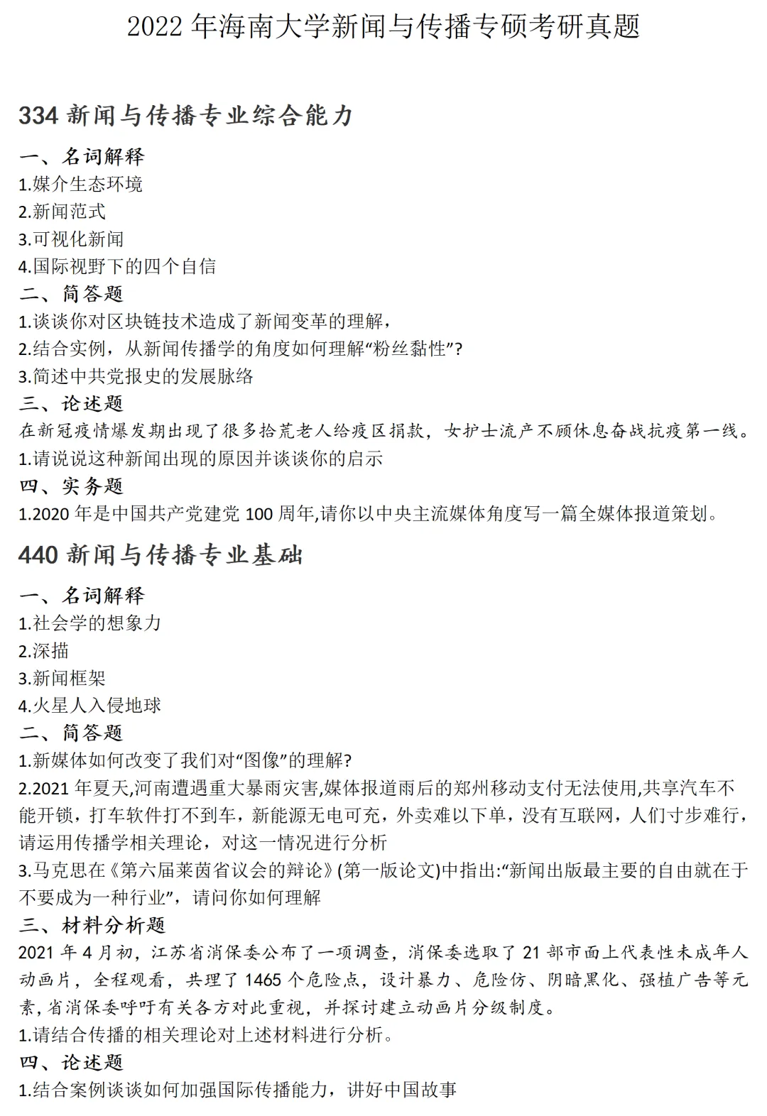 海南大学新闻与传播考研真题2022