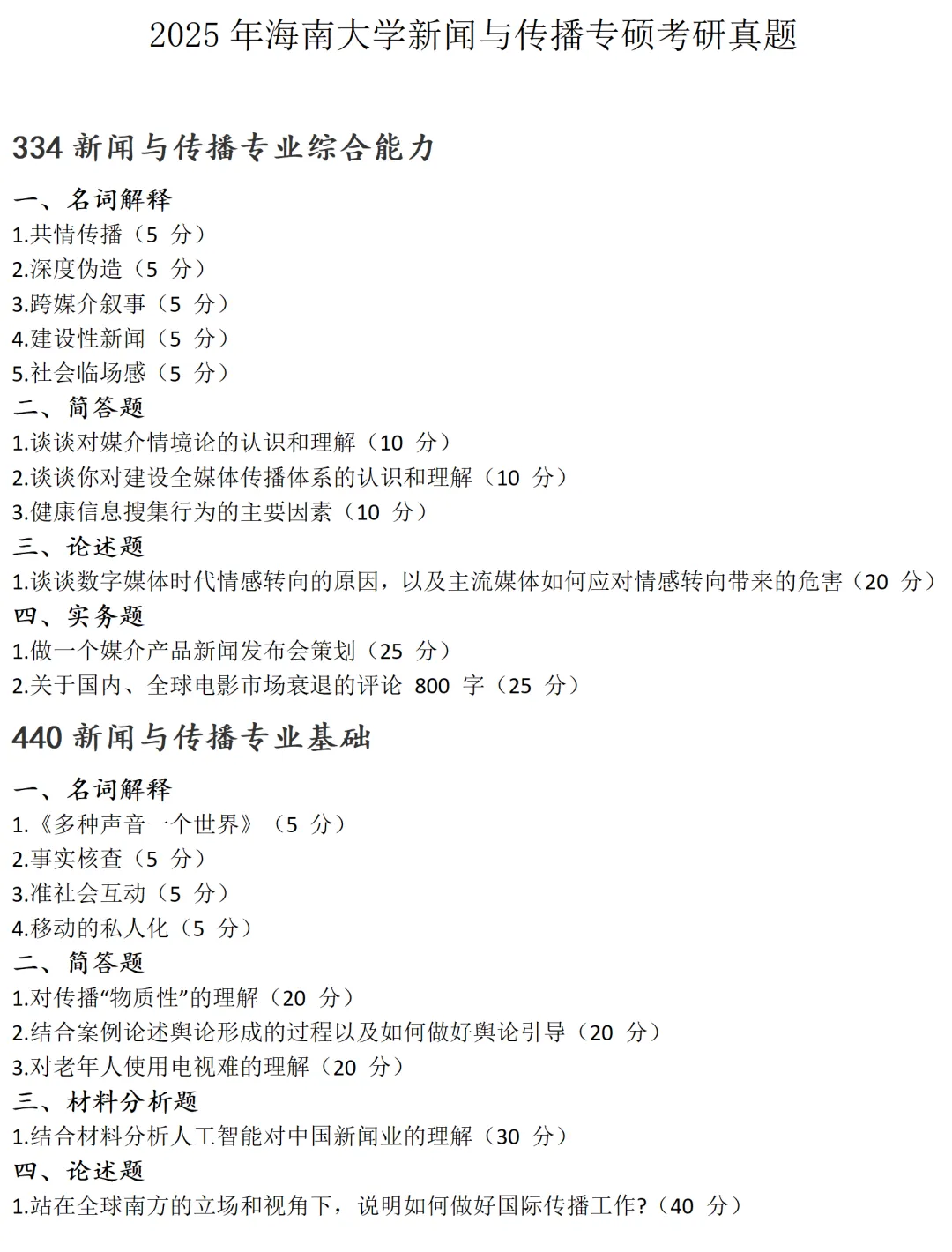 新闻与传播2019-2025历年考研真题已整理好,可直接获取!