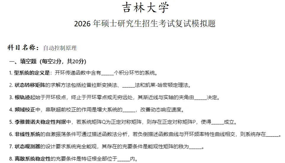 吉林大学自动控制原理考研复试真题模拟含答案