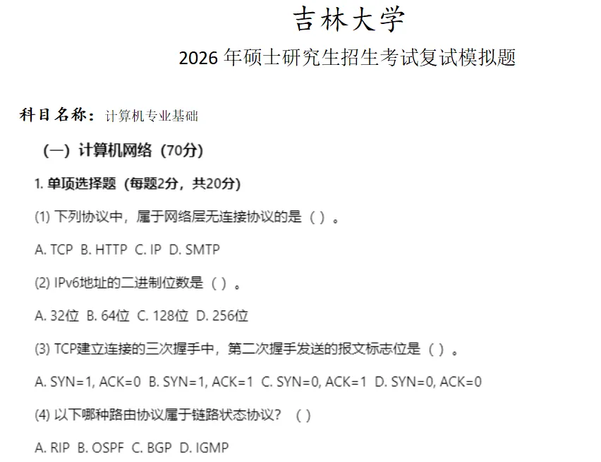 吉林大学计算机专业基础考研复试真题模拟含答案
