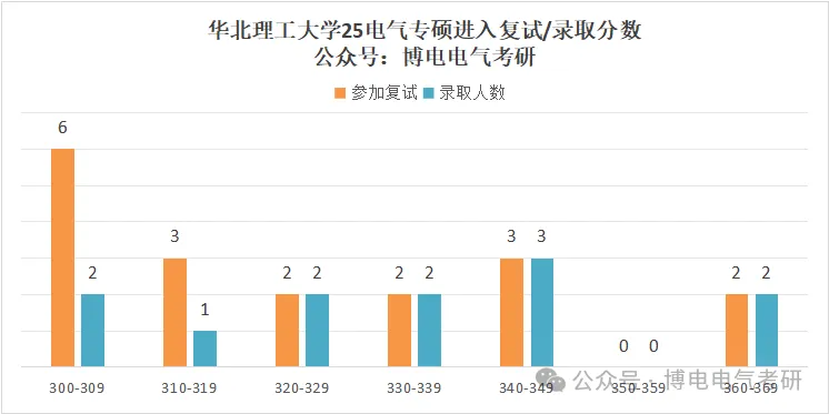 25考研华北理工大学电气专硕普通考生进入复试18人,拟录取12人,复录比为1.5:1;录取考生中,分数集中在300-349分之间,共计9人;320分以上100%被录取!最高分为367分,最低分为307分,平均分为333分。