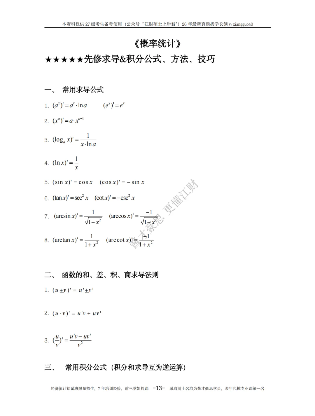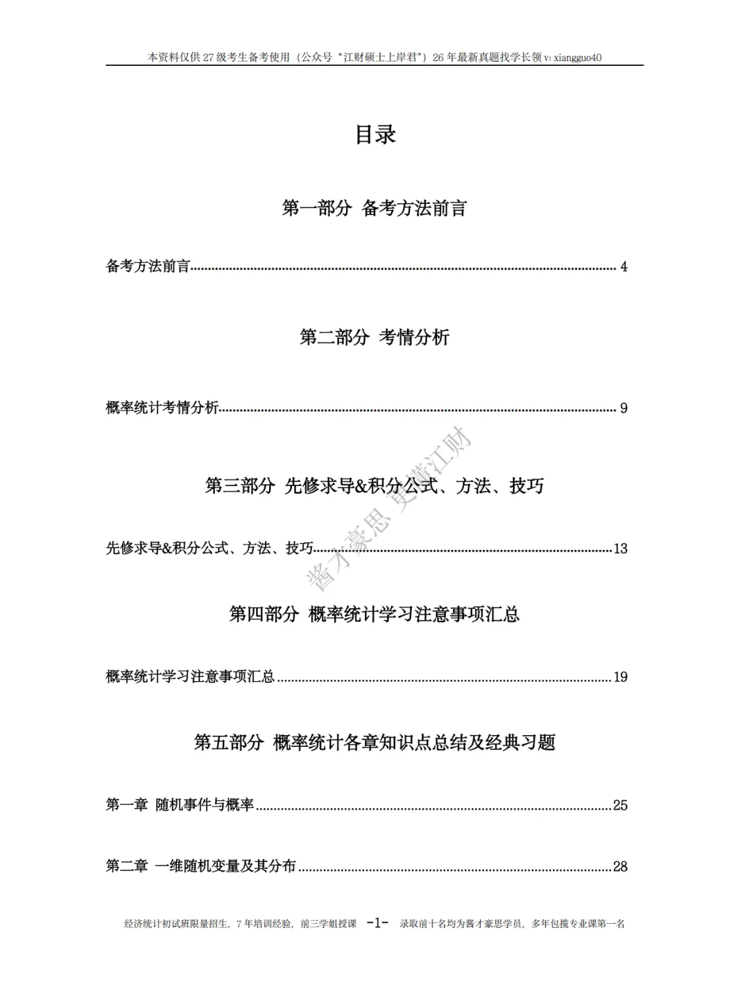 初试一点通概率论目录展示