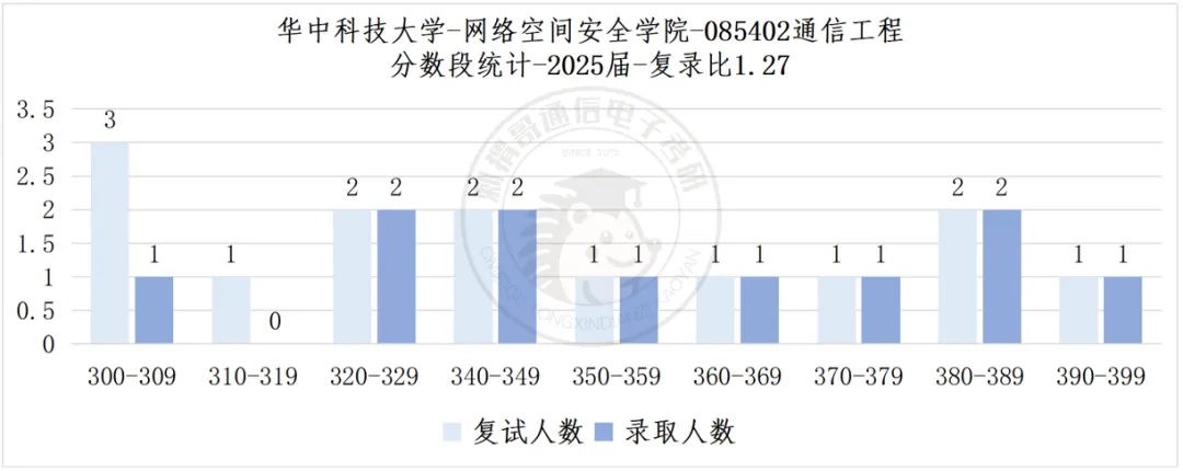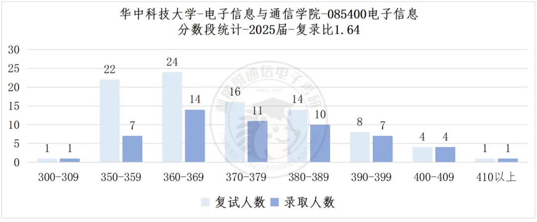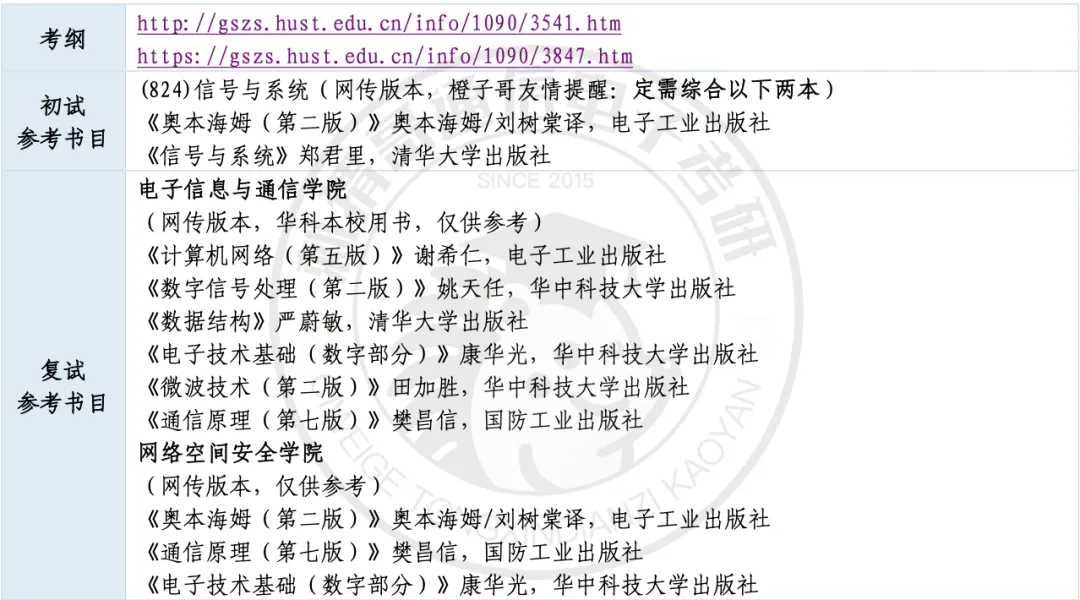 华中科技大学位于武汉市,是中华人民共和国教育部直属全国重点大学,国家"双一流"建设高校,"985工程"、"211工程"建设高校,入选"强基计划"、"111计划"、卓越工程师教育培养计划、国家建设高水平大学公派研究生项目、新工科研究与实践项目、中国政府奖学金来华留学生接收院校、国家大学生文化素质教育基地。综合近几年分数来看,上岸难度在4颗星(不考虑每年可能的特殊扩招情况),专业课难度属于A(不与多门课院校比较)。近几年华科电信学院招生规模整体保持稳定,但随着军山校区的投入使用,专硕招生名额有望在未来几年内逐步扩大,为考生提供更多上岸机会。总的来说,华中科技大学电信学院报考难度属于中等偏上,作为顶级985院校且电子信息为当下热门专业,每年吸引大量考生报考,竞争十分激烈,但竞争激烈并不意味着机会渺茫,华科复试较为公平,初试和复试均以笔试成绩为主要依据,凭实力说话,每年也有不少来自武理、华中师、地大、武科大等非本校考生成功上岸的案例。关于学硕专硕及学院的选择,建议大家前期不必急于做决定,可以到8、9月份结合自身复习情况以及各方向的报考热度再做选择,因为无论是电信院、网安院还是光电院,初试科目均为数一、英一加824信号与系统,备考前期并无差异。具体来看,学硕在本部就读且提供住宿,因此26年竞争较为激烈;专硕自26届起前往军山校区并提供住宿,军山校区虽然地理位置较为偏远,但26年专硕竞争相较25年明显缓和,对于渴望稳妥上岸的同学,27届报考时可结合自身情况适当考虑专硕。在学院选择方面,无论电信院还是网安院,复试科目都相当多——电信院需要在两个月内学习至少四门专业课(六选四)参加复试笔试,网安院专硕需准备四门课、学硕需准备三门课,但好消息是面试环节各考生分差不大,主要差距体现在笔试上,每年不少本校生也在此环节失利,因此建议大家尽早开始复试准备。网安院导师整体风格相较电信院更为佛系,加之招生数量较少,近几年分数线远低于电信院,大家可结合报考热度综合考量。此外光电院每年招生名额仅两个左右,主要方向为光通信算法,但复试科目为光学类课程,跨考难度较大,需慎重考虑,不过优势在于每年分数线很低,适合有一定光学基础且愿意博弈的考生。关于分数线的参考,需要注意的是23年之前专硕的分数线参考价值不大,因为当时考的是数二英二,与现在的考试科目不同;而25年华科电信院分数线之所以出现大幅上涨,主要原因在于当年专业课难度较低,导致高分段考生扎堆,属于特殊年份的异常波动;26年随着专业课难度回归正常水平,部分方向的分数线相较25年下降20分以上,整体趋于合理,因此27届考生在参考分数线时应以26年数据为主要依据,更具实际指导意义。