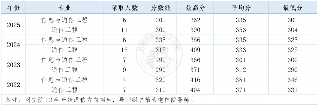 备注:网安院22年开始通信方向招生,导师组之前为电信院导师。