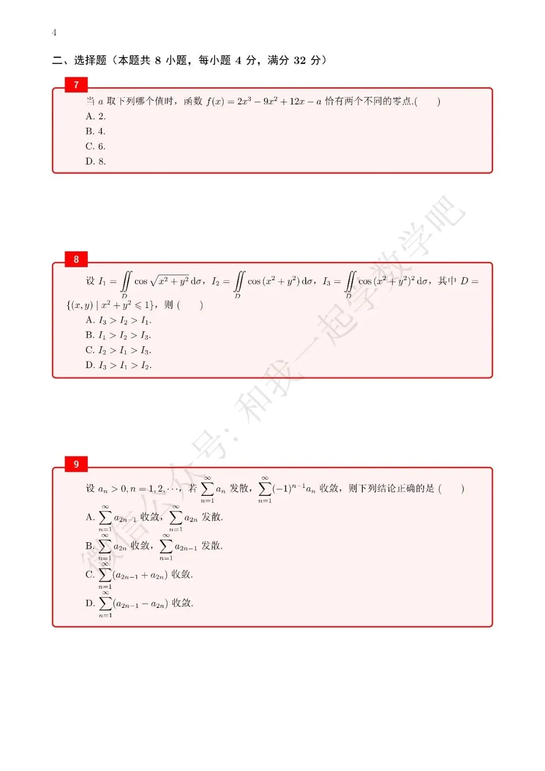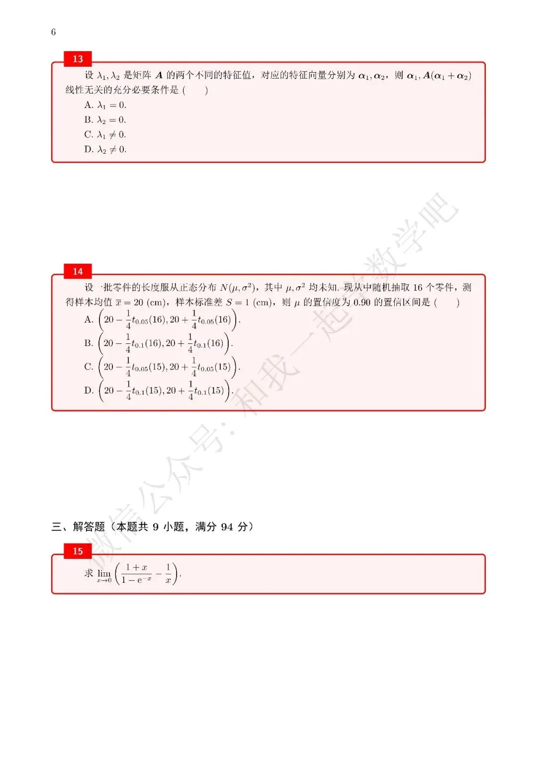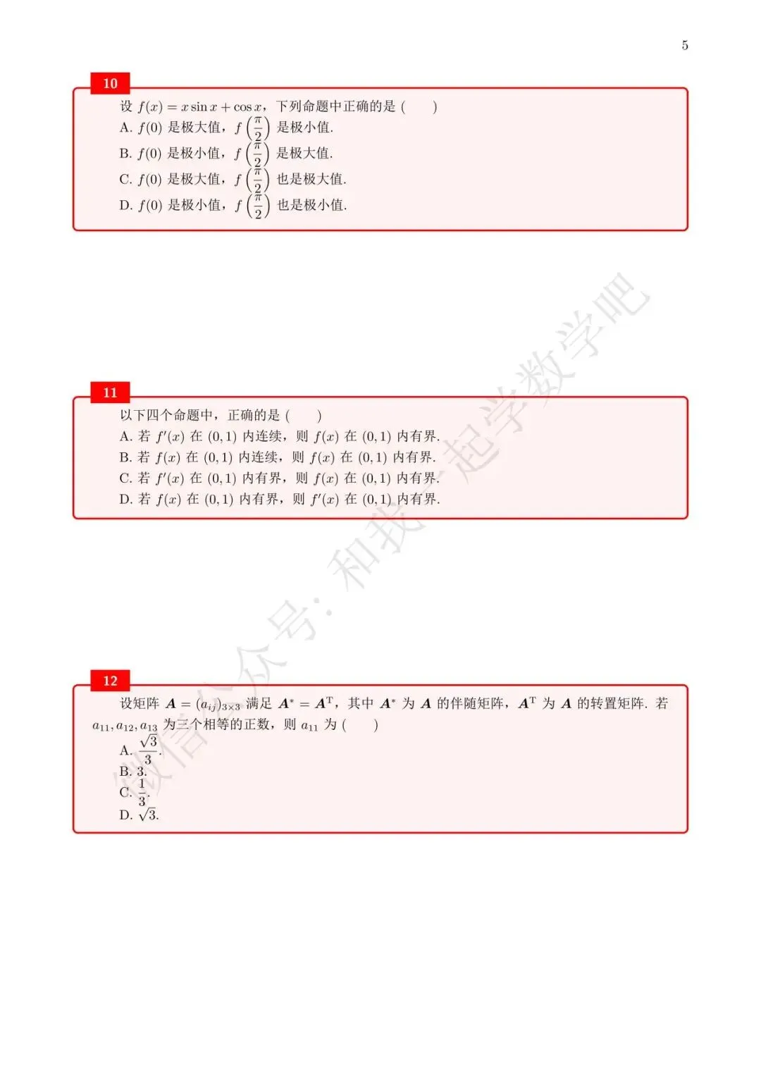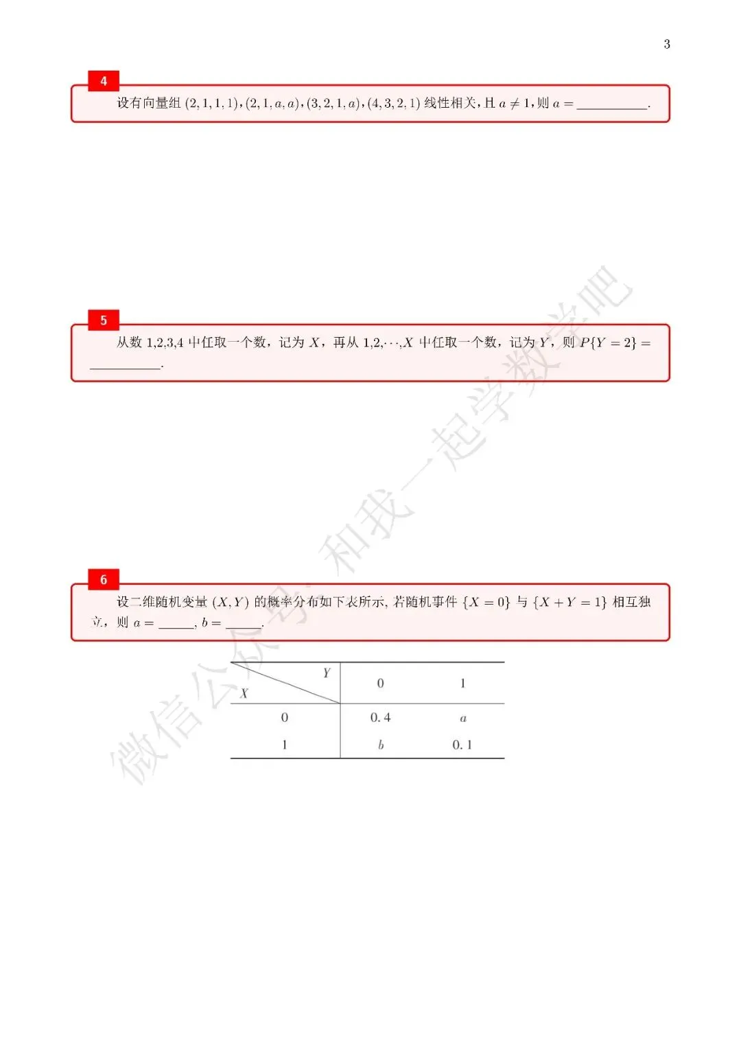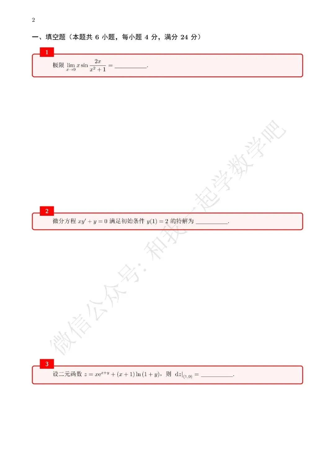 为了方便各位小伙伴们刷题,我重新排版了05年数三的真题,在每道题下面都增加了空白,方便大家写答案,记录相关知识点。