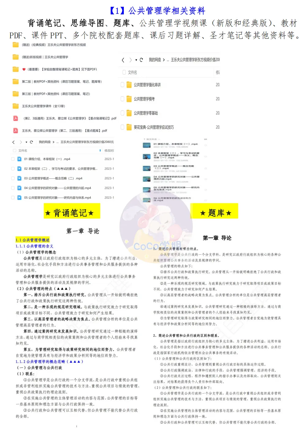 题库是每章节有可能出的题目,背诵后查漏补缺。详细可点击→资料介绍|王乐夫公共管理学题库